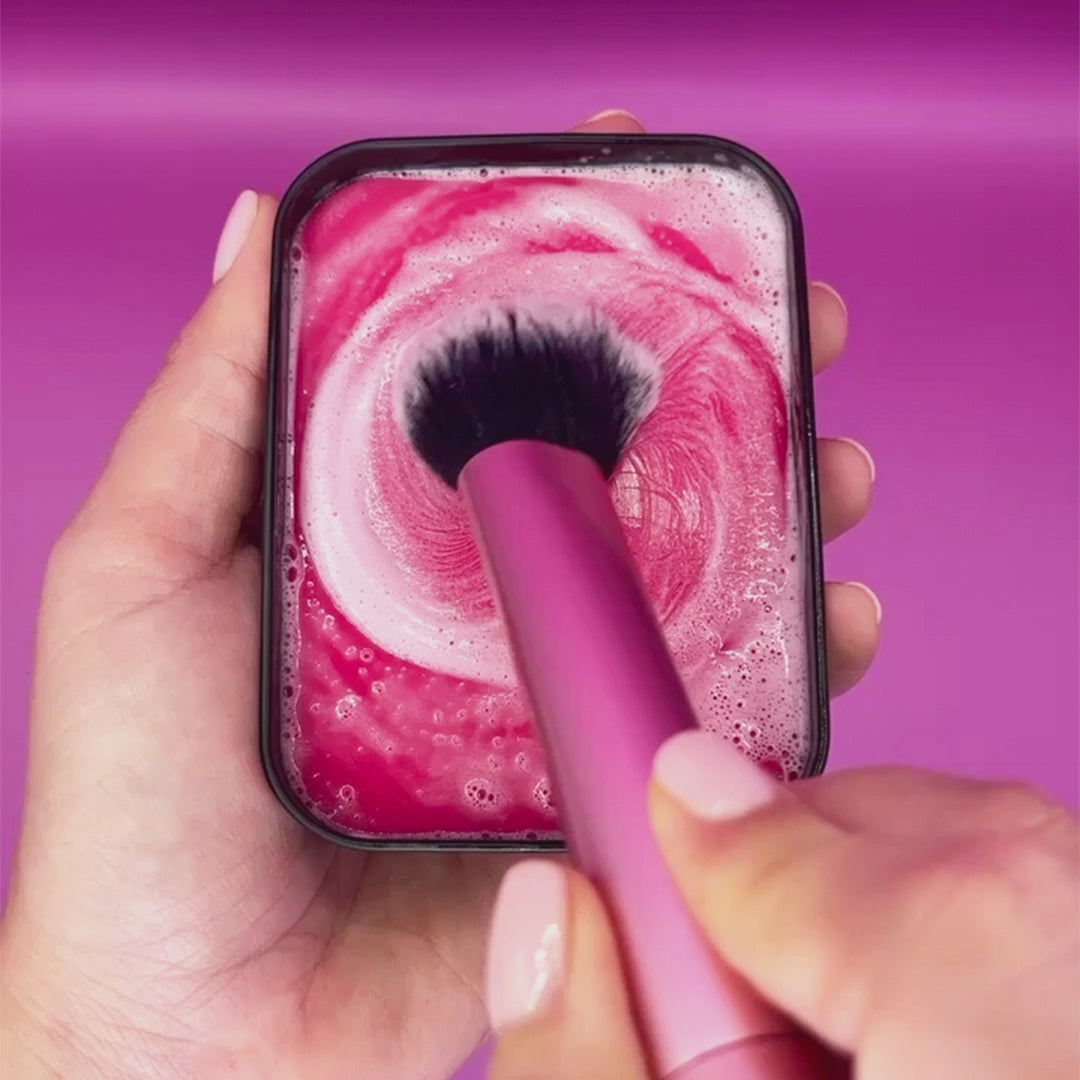 Don't let dirty make brushes sabotage your glow! Our bar soap removes all Makeup residue, dirt & bacteria without compromising the brush bristles and your skin health. The soap is perfect for natural and synthetic materials, it contains Coconut Oil for brush care and a delicious Pomegranate fragrance. All this in a compact easy to travel packaging.